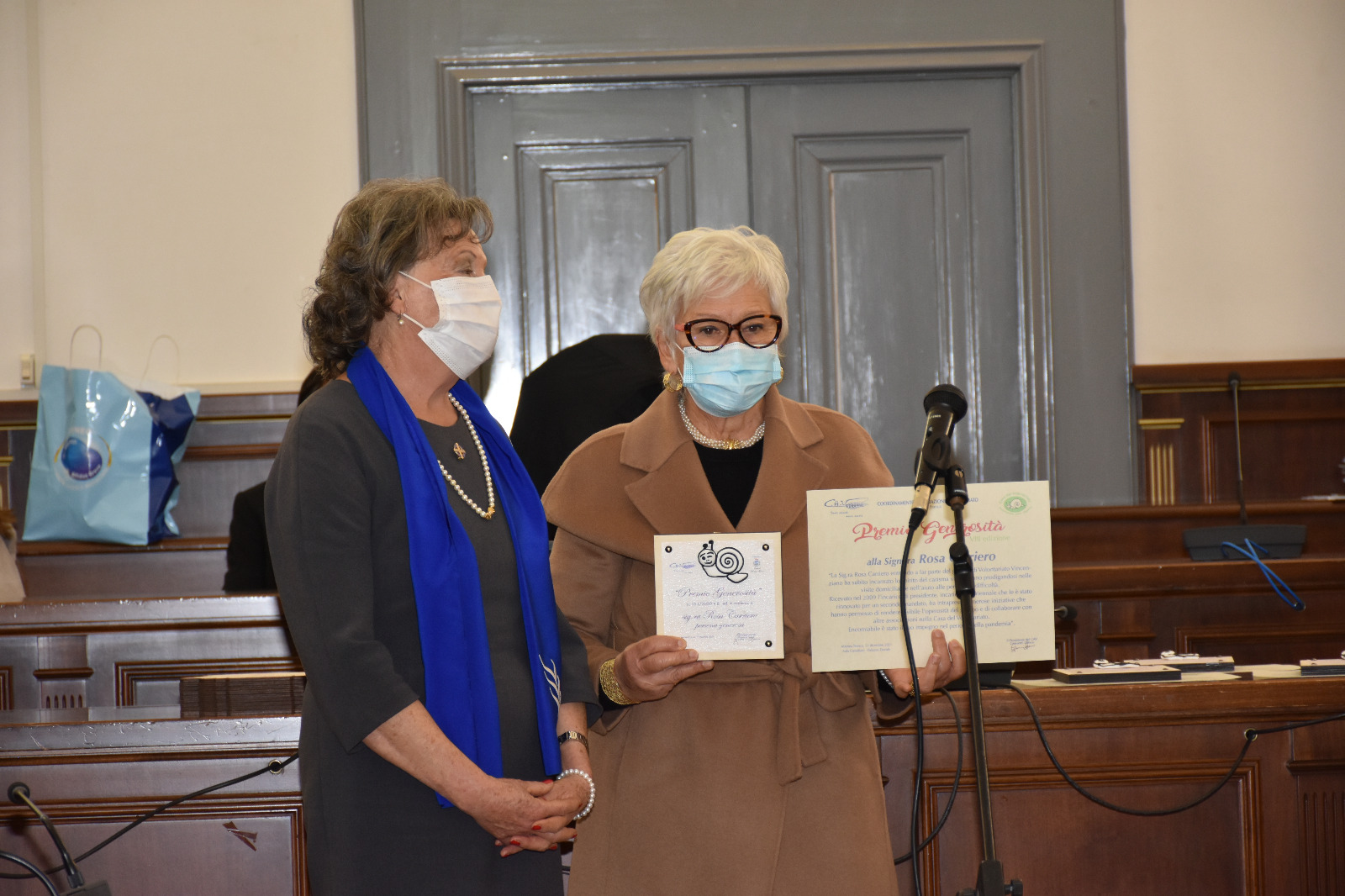 Il premio generosità è stato consegnato alla nostra amica e socia Rosa Carriero Carrozzo dal Presidente del  C.A.V. (Coordinamento  Associazione di Volontarito) di Martina Franca alla presenza del Sindaco dott.Franco Ancona per l’impegno profuso negli otto anni nei quali ha ricoperto la carica di Presidente e per la generosità con la quale si e prodigata al bene del prossimo.