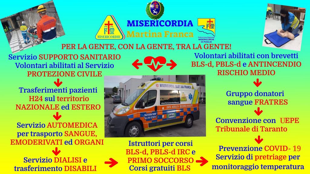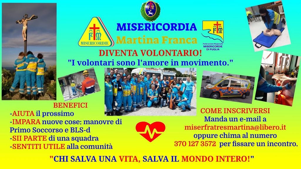 La Confraternita di Misericordia di Martina Franca nasce il 25 febbraio 2002 da un gruppo di persone uniti da uno scopo comune: AIUTARE